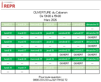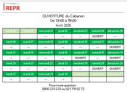 Jours d’ouverture du Cabanon