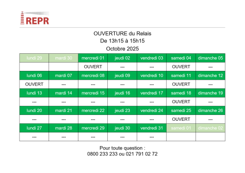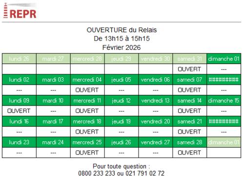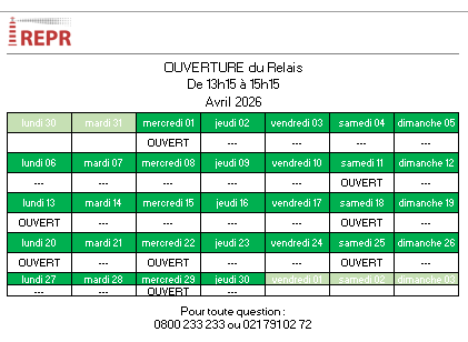 Si vous souhaitez obtenir d’autres informations en dehors des heures de permanence, n’hésitez pas à appeler le 0800 233 233. Sinon, vous pouvez aussi nous contacter par mail ou sur Facebook.