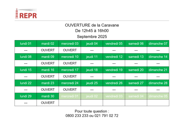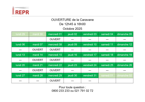 Jours d’ouverture de la Caravane