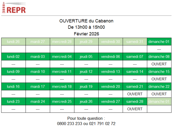 Jours d’ouverture du Cabanon