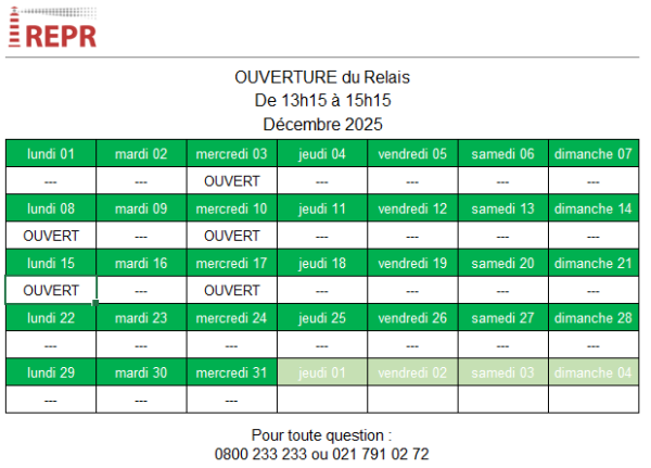 Si vous souhaitez obtenir d’autres informations en dehors des heures de permanence, n’hésitez pas à appeler le 0800 233 233. Sinon, vous pouvez aussi nous contacter par mail ou sur Facebook.