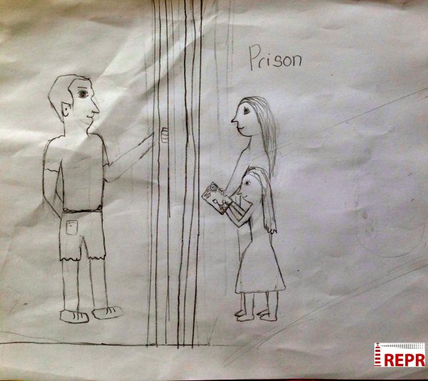 J’ai dit à maman que j’avais envie de voir papa mais maman m’a répondu que pour le moment on n’avait pas le droit d’aller le voir. Et il n’avait pas le droit de nous appeler. J’étais très triste, je voulais voir papa parce qu’il me manquait terriblement. Maman m’a dit qu’il était dans une maison où il n’avait pas le droit de sortir. Je me suis dit que cette maison était peut-être une prison. J’ai donc demandé à maman si c’était le cas, elle a pu me dire que c’était exact. Alors à ce moment là je me suis demandée…Qu’est-ce que mon papa avait fait ? Etait-il un criminel ? Avait-il tué quelqu’un ? Où dormait-il ? Avait-il une chambre ? Toutes ces questions trottaient dans ma tête… j’avais beaucoup de peine à me concentrer à l’école.