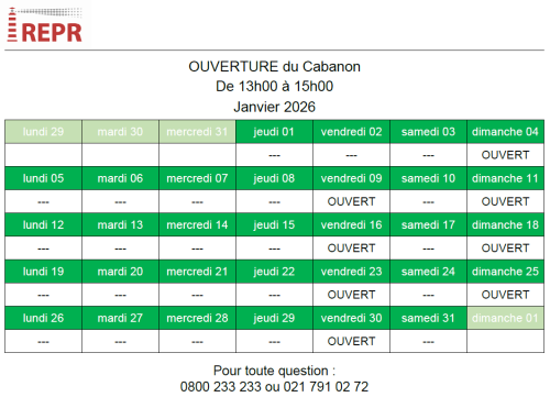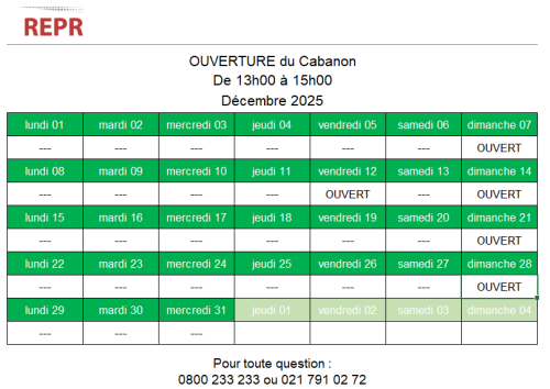 Jours d’ouverture du Cabanon