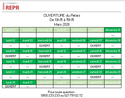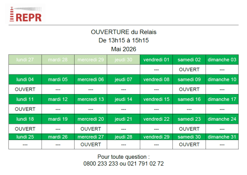 Si vous souhaitez obtenir d’autres informations en dehors des heures de permanence, n’hésitez pas à appeler le 0800 233 233. Sinon, vous pouvez aussi nous contacter par mail ou sur Facebook.
