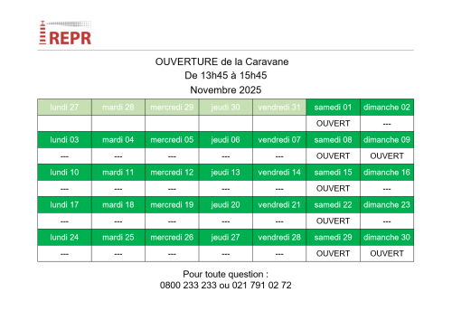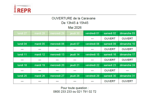 Jours d’ouverture de la Caravane