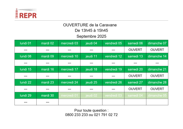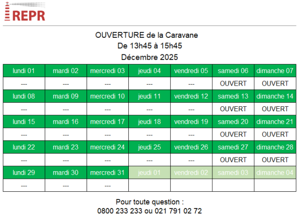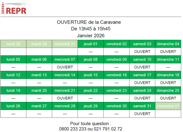 Jours d’ouverture de la Caravane