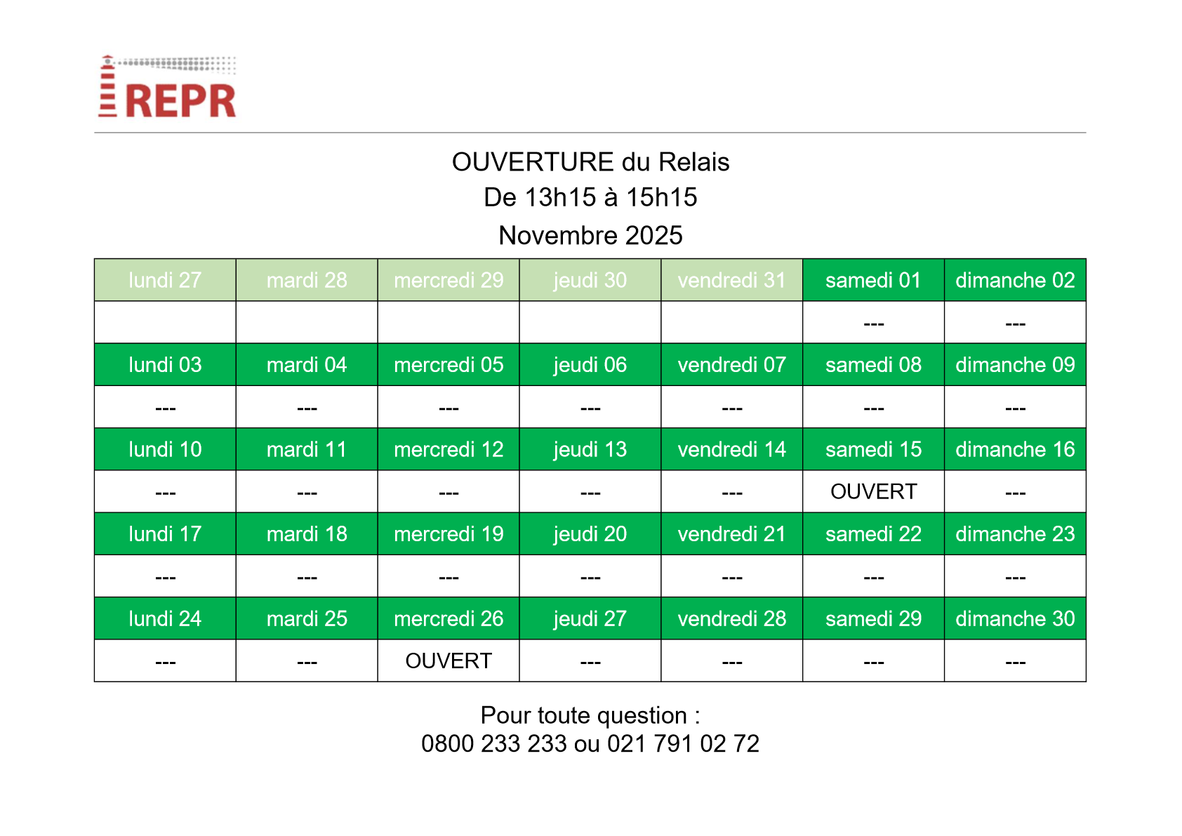 Si vous souhaitez obtenir d’autres informations en dehors des heures de permanence, n’hésitez pas à appeler le 0800 233 233. Sinon, vous pouvez aussi nous contacter par mail ou sur Facebook.